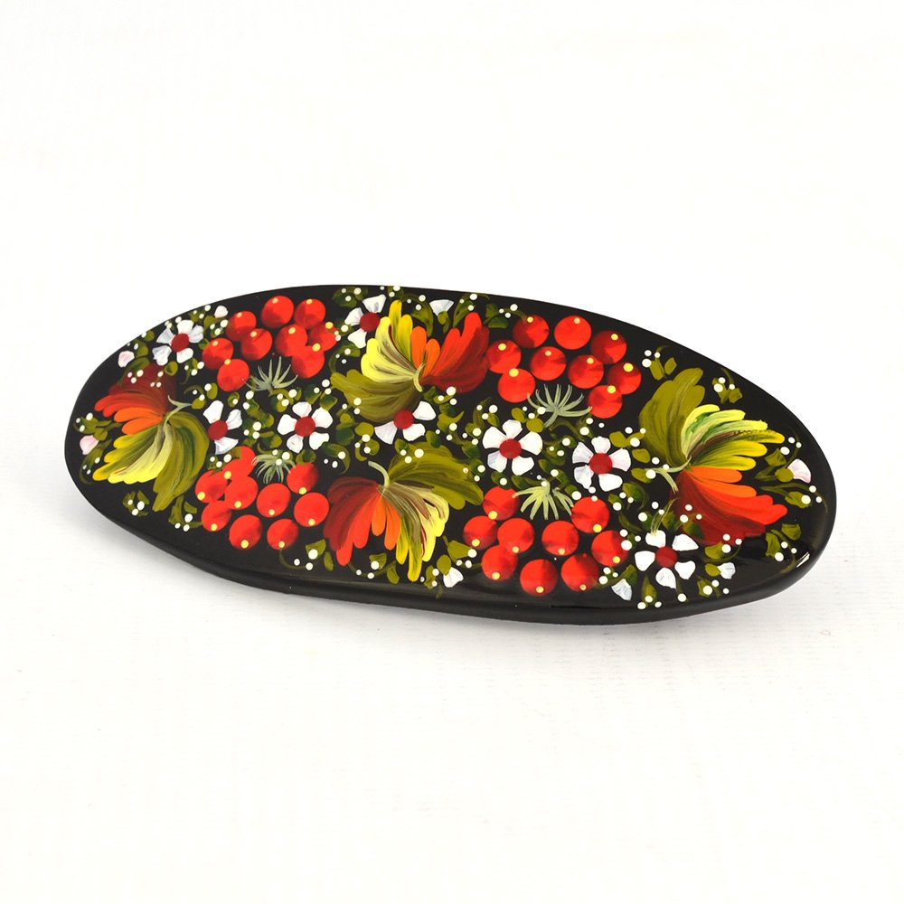 Заколка ручної роботи, розписана в техніці "Київський розпис", авторська робота. Має підпис художника.