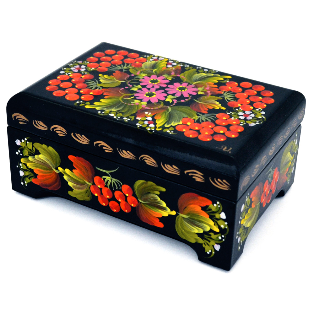 Шкатулка ручної роботи, розписана в техніці "Київський розпис", авторська робота. Має підпис художника.
