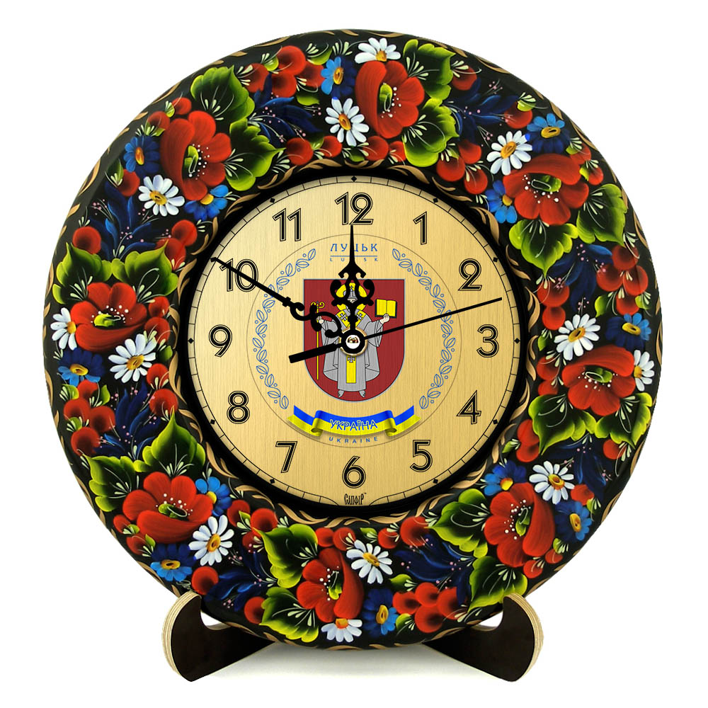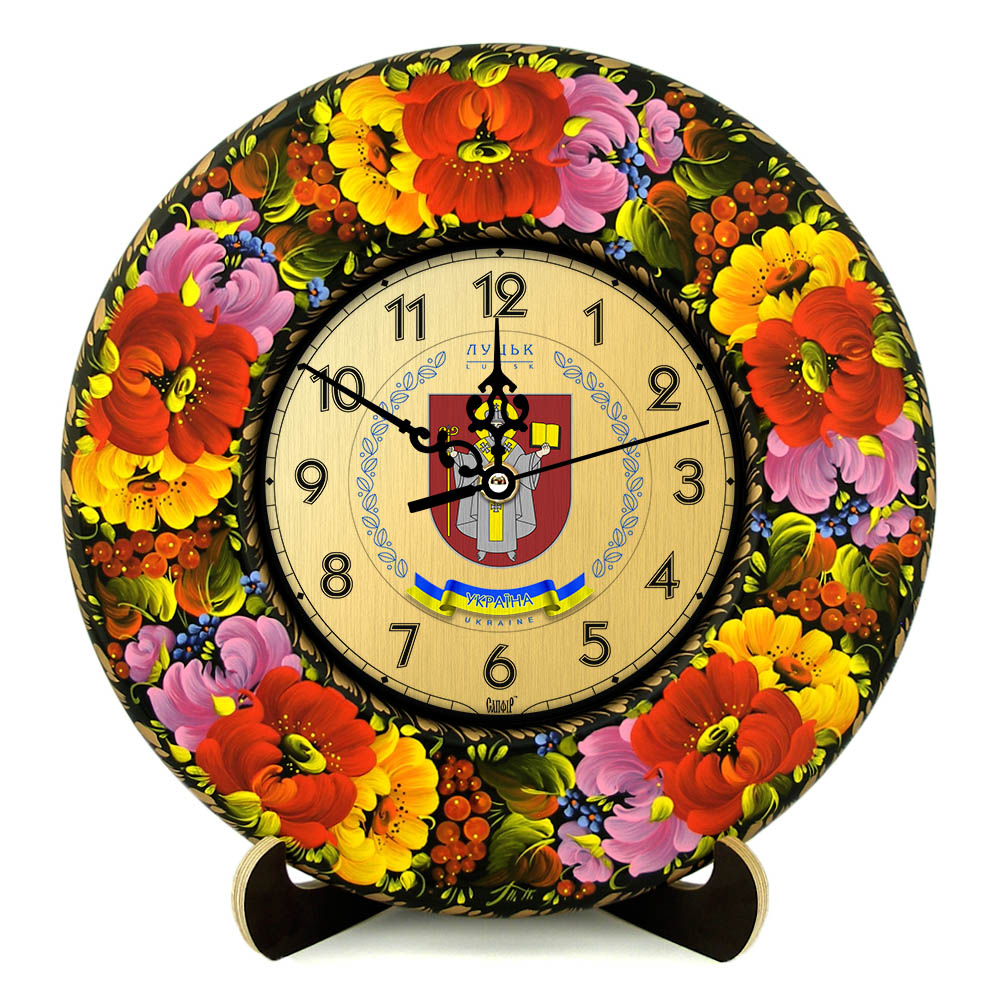 Годинник ручної роботи, розписаний в техніці "Київський розпис", авторська робота. Має підпис художника.