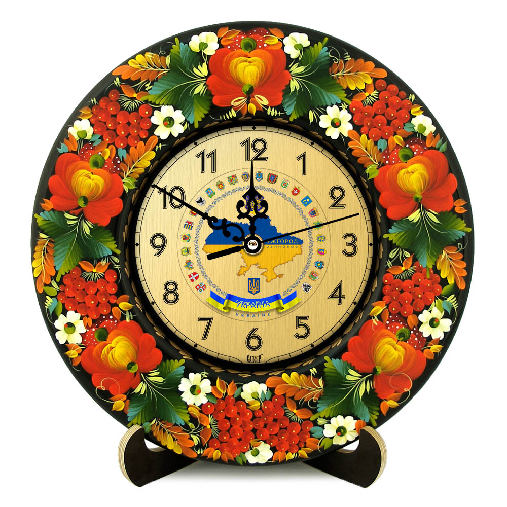Артикул: ГД-01 Категорія: УЖГОРОД Годинник ручної роботи, розписаний в техніці "Київський розпис", авторська робота. Має підпис художника.