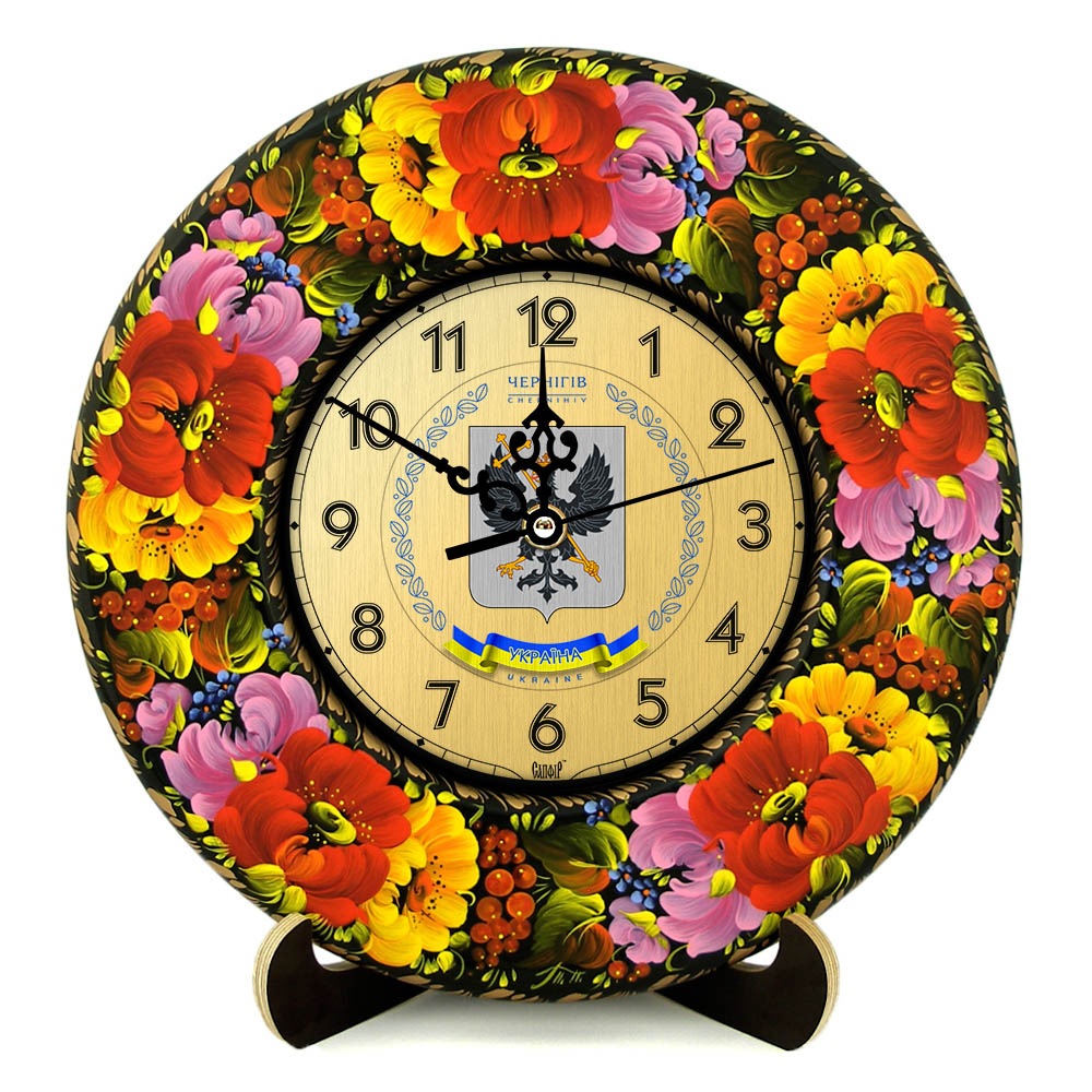 Годинник ручної роботи, розписаний в техніці "Київський розпис", авторська робота. Має підпис художника.