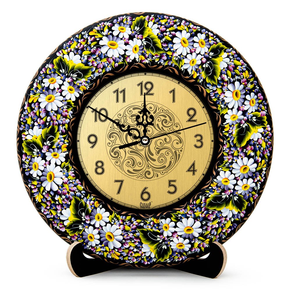 Годинник ручної роботи, розписаний в техніці "Київський розпис", авторська робота. Має підпис художника.