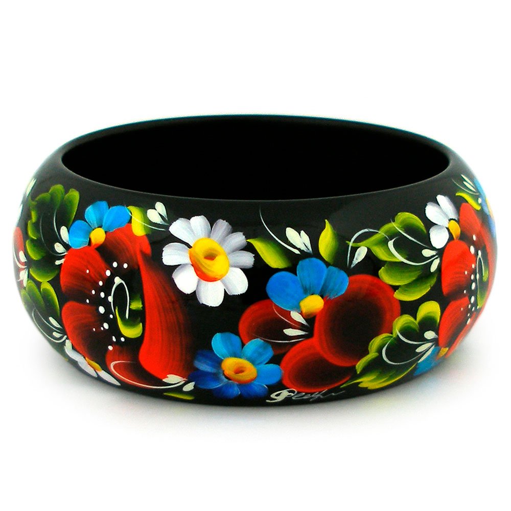Браслет ручної роботи, розписаний в техніці "Київський розпис", авторська робота. Має підпис художника.
