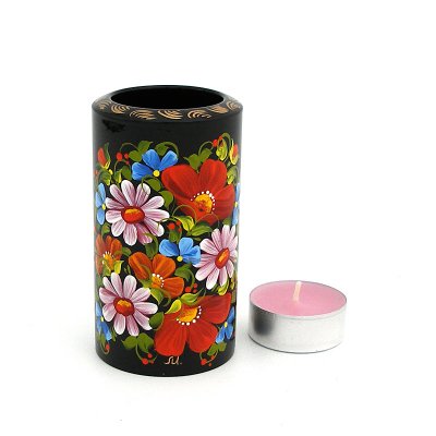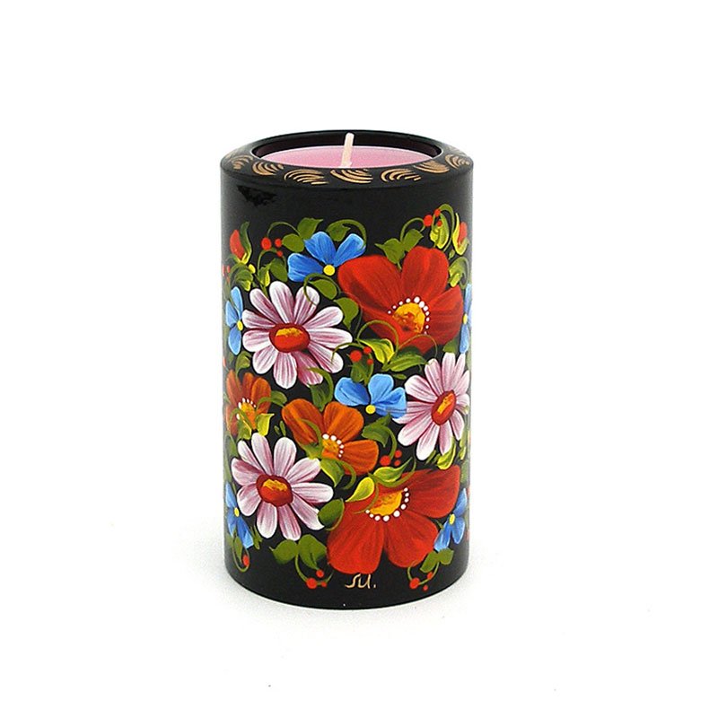 Свічник для чайної свічки ручної роботи, розписаний в техніці "Київський розпис", авторська робота. Має підпис художника.